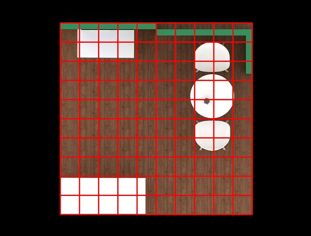 • Contrasting Dark Floor Finish