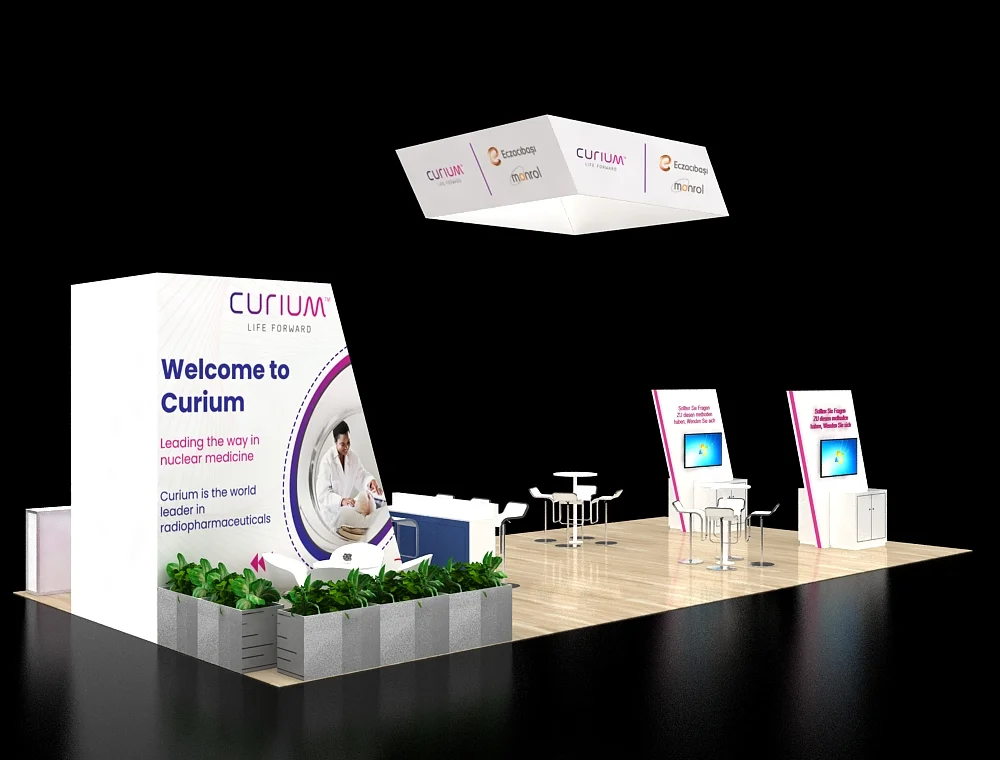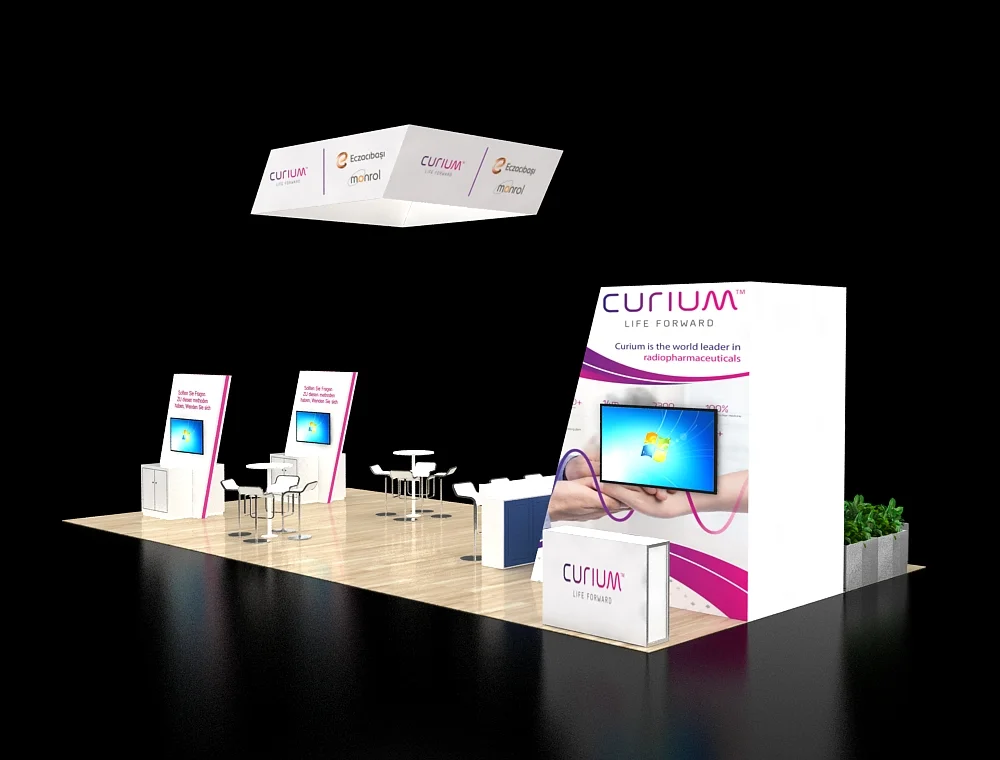 20x30 Exhibit: 3 Screens, Overhead Cube, Slatted Pylon