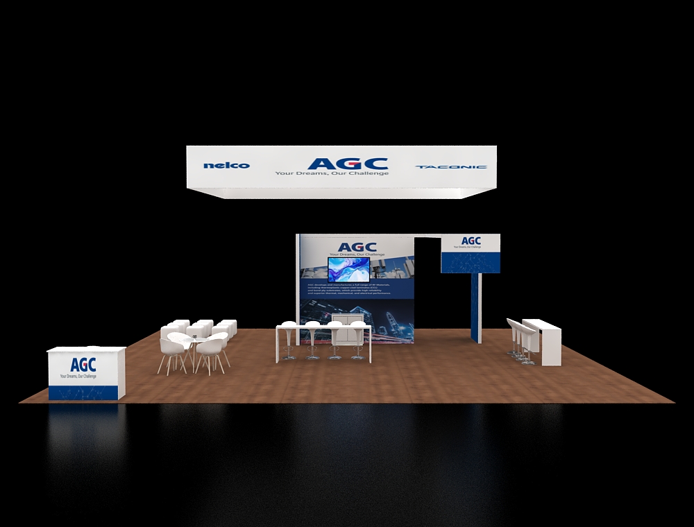 40x40 Booth with Central Tower and Large Overhead Canopy