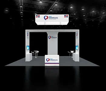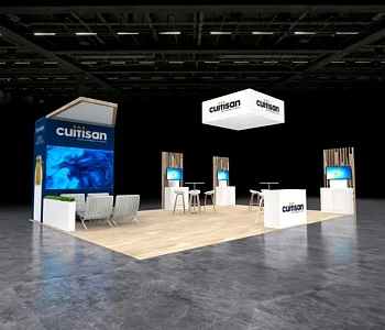 This booth can help you make a bold statement on the exhibition floor and maximize floor space.